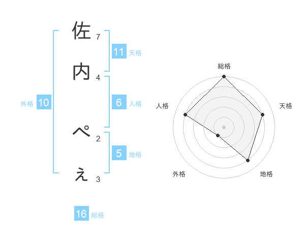 佐内 ぺぇさんの総格は16画の5点!