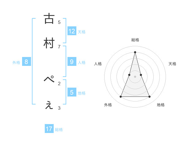 古村 ぺぇさんを姓名の画数から五運を鑑定
