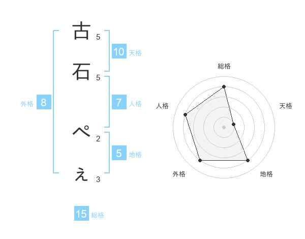 古石 ぺぇさんを姓名の画数から五運を鑑定