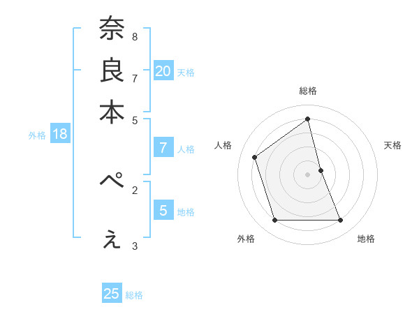 奈良本 ぺぇさんを姓名の画数から五運を鑑定