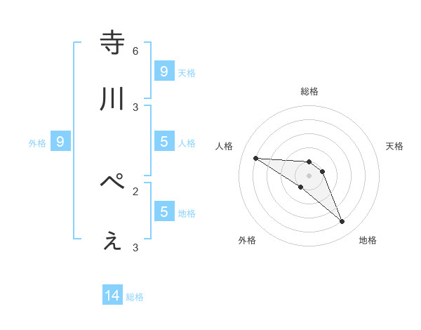 寺川 ぺぇさんの総格は14画の1点!