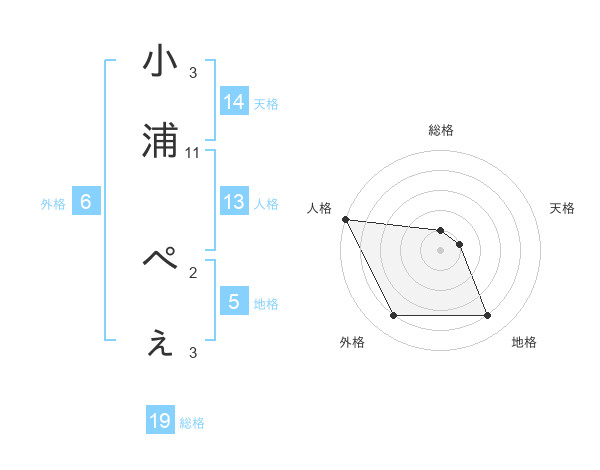 小浦 ぺぇさんを姓名の画数から五運を鑑定