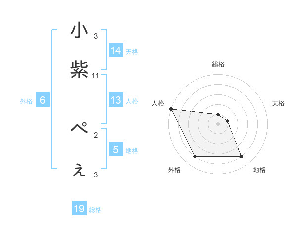 小紫 ぺぇさんの天格は14画の1点!