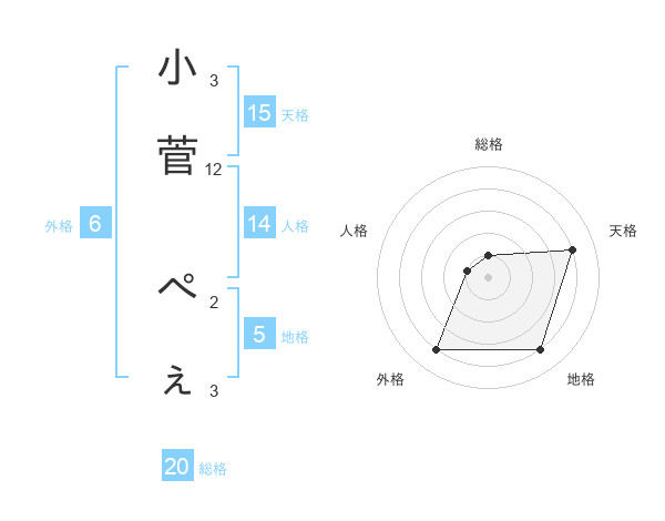 小菅 ぺぇさんの総格は20画の1点!