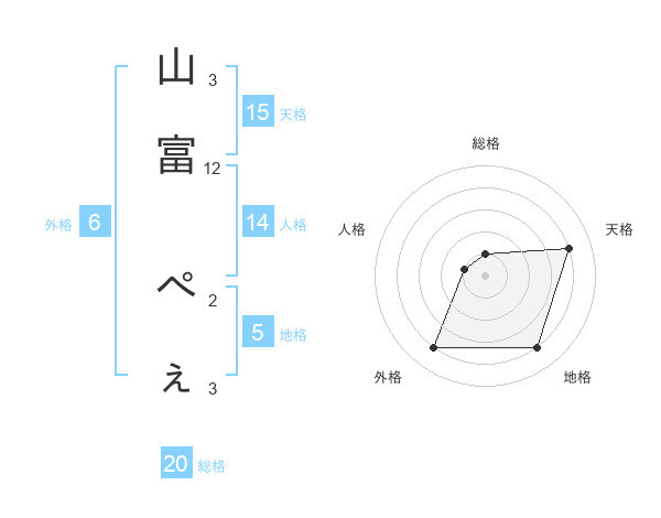 山富 ぺぇさんの天格は15画の4点!