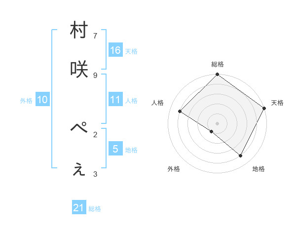 村咲 ぺぇさんを姓名の画数から五運を鑑定