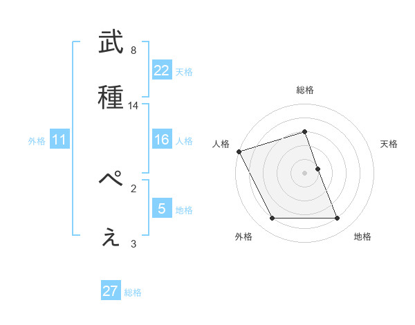 武種 ぺぇさんを姓名の画数から五運を鑑定