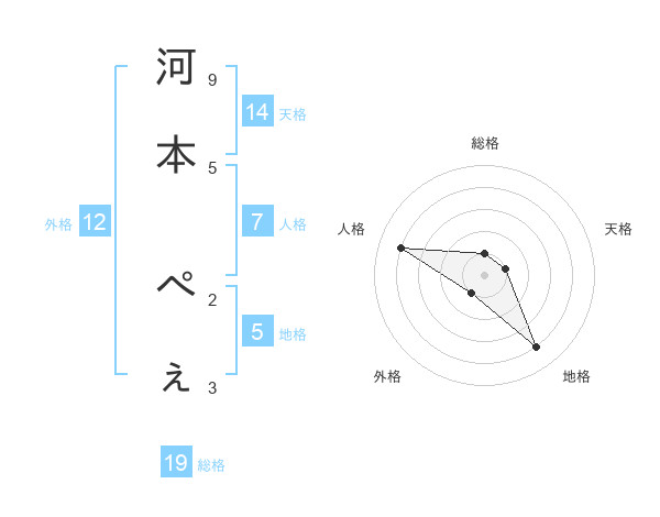 河本 ぺぇさんを姓名の画数から五運を鑑定