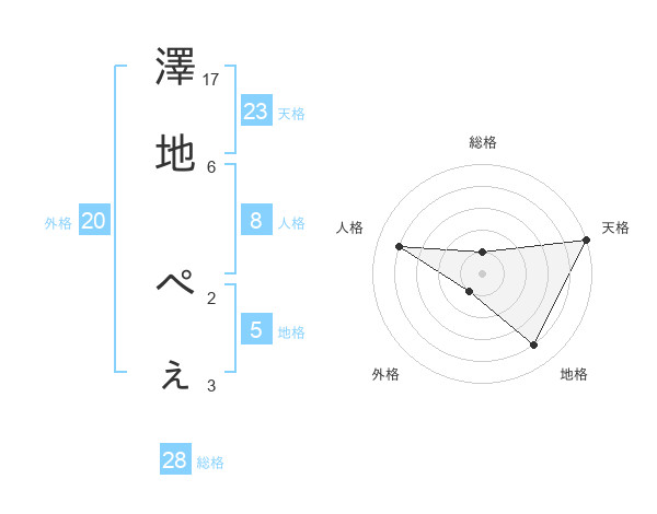 澤地 ぺぇさんを姓名の画数から五運を鑑定