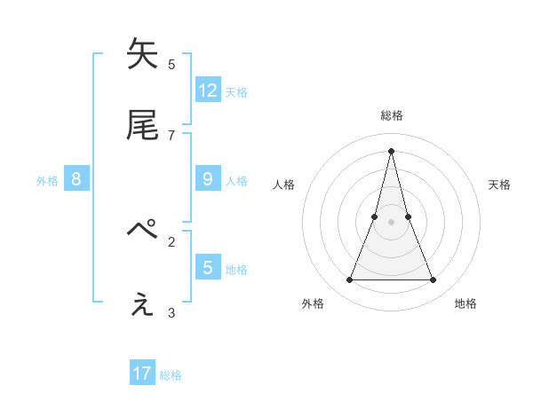 矢尾 ぺぇさんの総格は17画の4点!