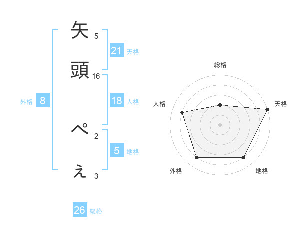 矢頭 ぺぇさんの総格は26画の2点!