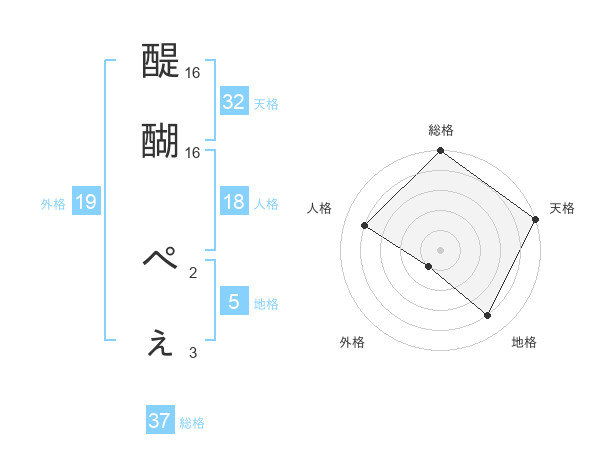 醍醐 ぺぇさんの総格は37画の5点!