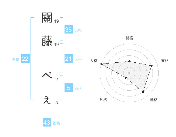 關藤 ぺぇさんの外格は22画の1点!