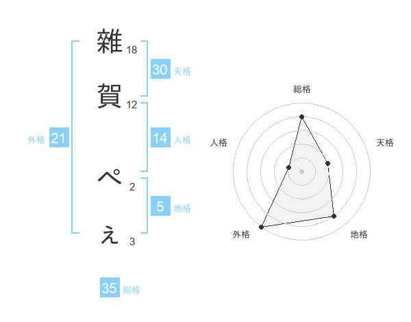 雜賀 ぺぇさんを姓名の画数から五運を鑑定