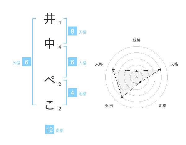 井中 ぺこさんの天格は8画の4点!
