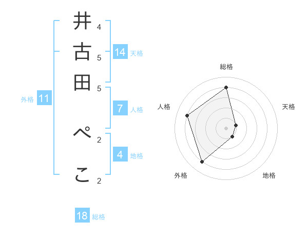 井古田 ぺこさんの総格は18画の4点!