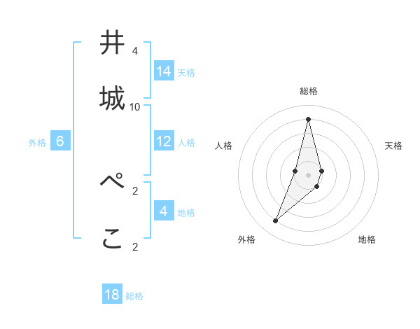 井城 ぺこさんを姓名の画数から五運を鑑定