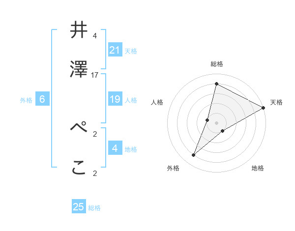 井澤 ぺこさんの天格は21画の5点!