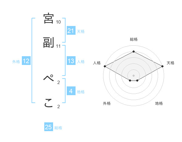 宮副 ぺこさんの天格は21画の5点!