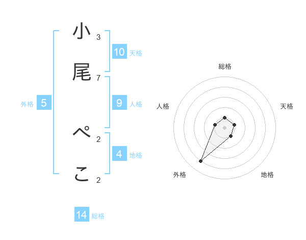 小尾 ぺこさんの総格は14画の1点!