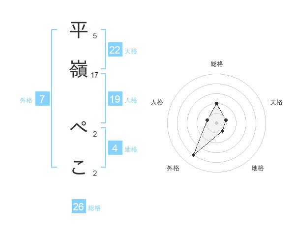 平嶺 ぺこさんを姓名の画数から五運を鑑定