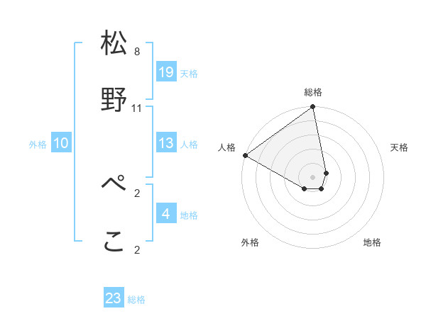松野 ぺこさんの天格は19画の1点!