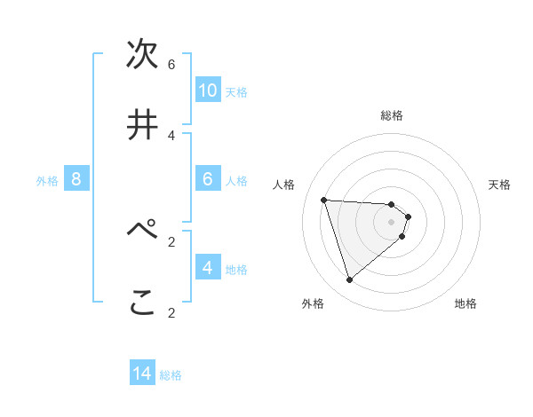 次井 ぺこさんの外格は8画の4点!