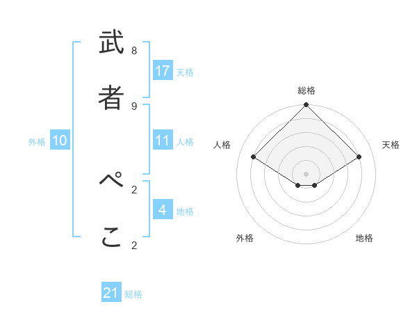 武者 ぺこさんを姓名の画数から五運を鑑定