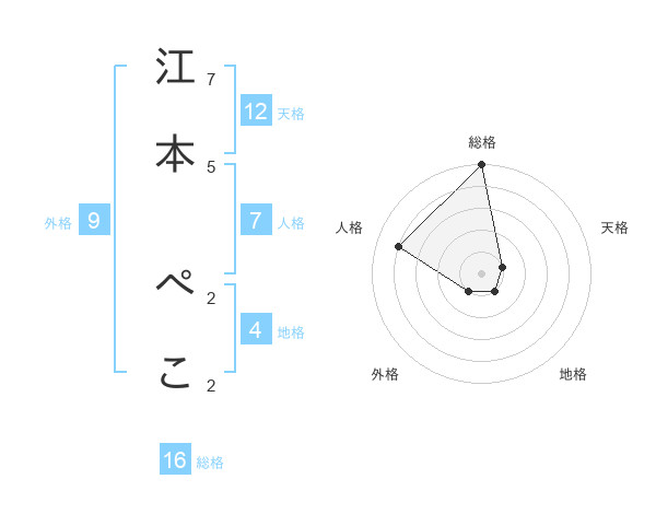 江本 ぺこさんを姓名の画数から五運を鑑定
