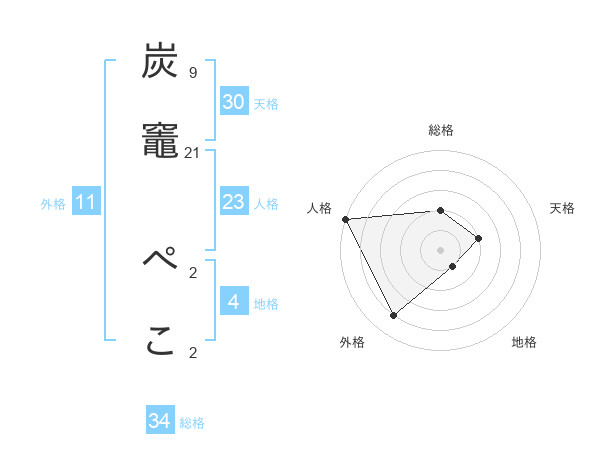 炭竈 ぺこさんの地格は4画の1点!