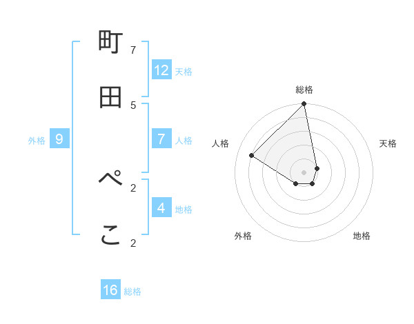 町田 ぺこさんの総格は16画の5点!