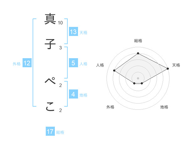真子 ぺこさんを姓名の画数から五運を鑑定