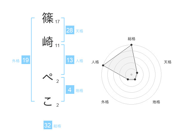 篠崎 ぺこさんを姓名の画数から五運を鑑定