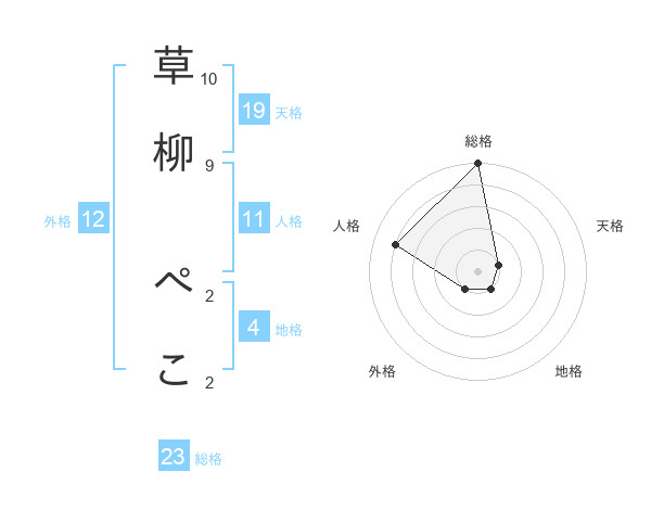 草柳 ぺこさんを姓名の画数から五運を鑑定