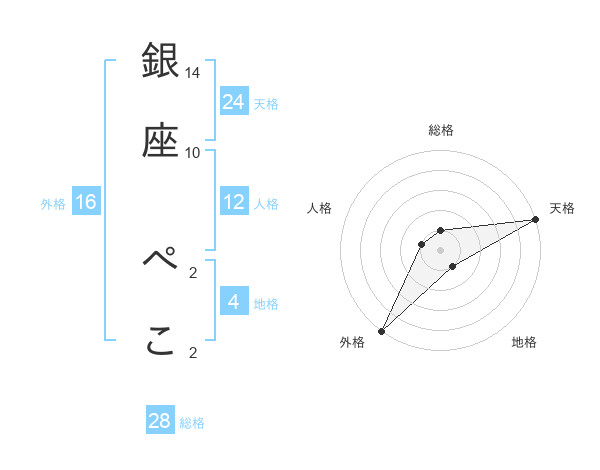 銀座 ぺこさんを姓名の画数から五運を鑑定