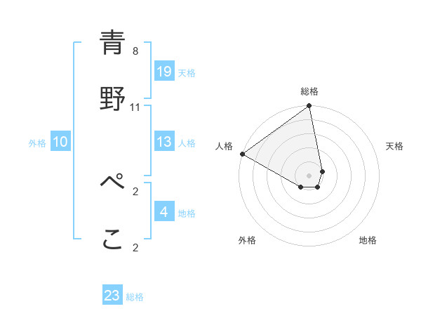 青野 ぺこさんの天格は19画の1点!