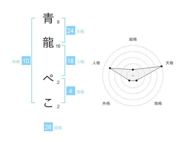 青龍 ぺこさんの総格は28画の1点!
