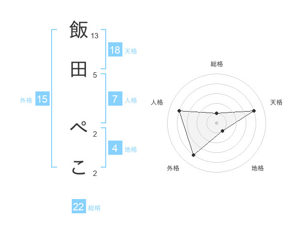 飯田 ぺこさんの天格は18画の4点!