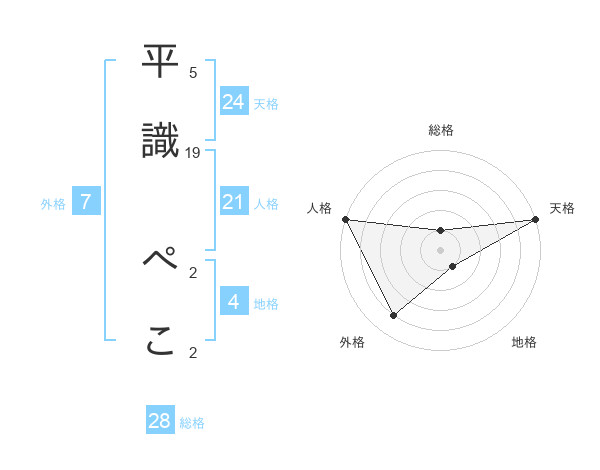 平識 ぺこさんを姓名の画数から五運を鑑定