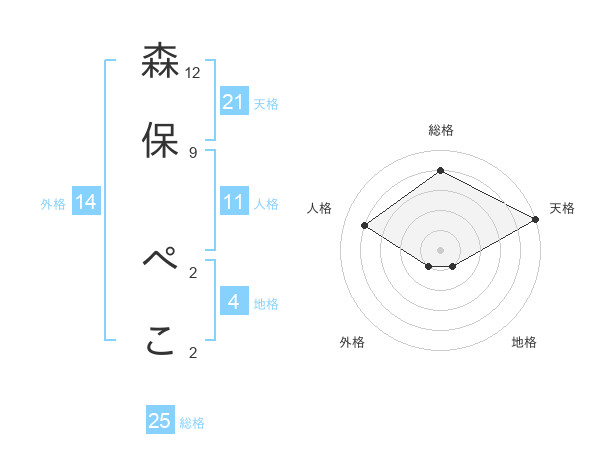 森保 ぺこさんを姓名の画数から五運を鑑定
