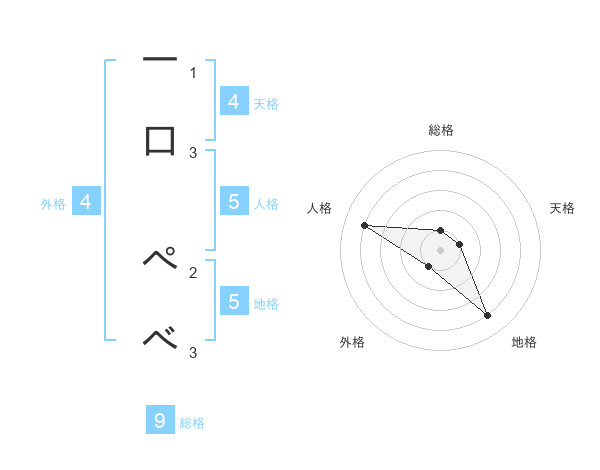 一口 ぺべさんの地格は5画の4点!