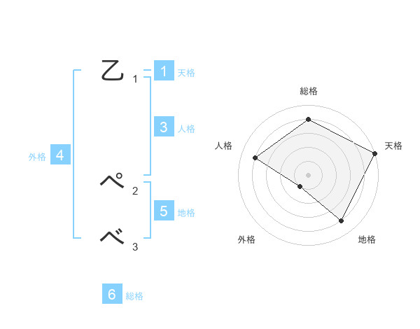 乙 ぺべさんの天格は1画の5点!