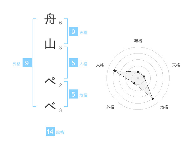 舟山 ぺべさんの総格は14画の1点!