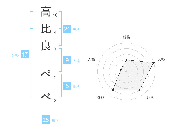 高比良 ぺべさんの天格は21画の5点!