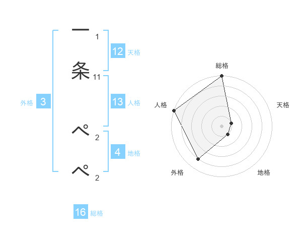 一条 ぺぺさんを姓名の画数から五運を鑑定