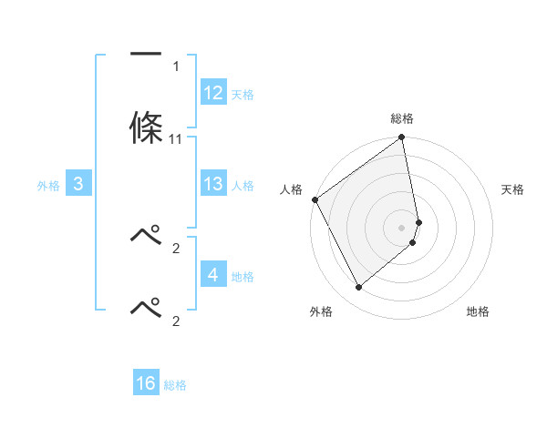 一條 ぺぺさんの総格は16画の5点!