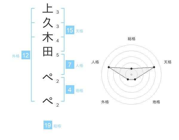 上久木田 ぺぺさんを姓名の画数から五運を鑑定
