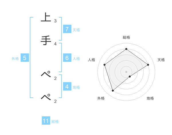 上手 ぺぺさんの総格は11画の4点!