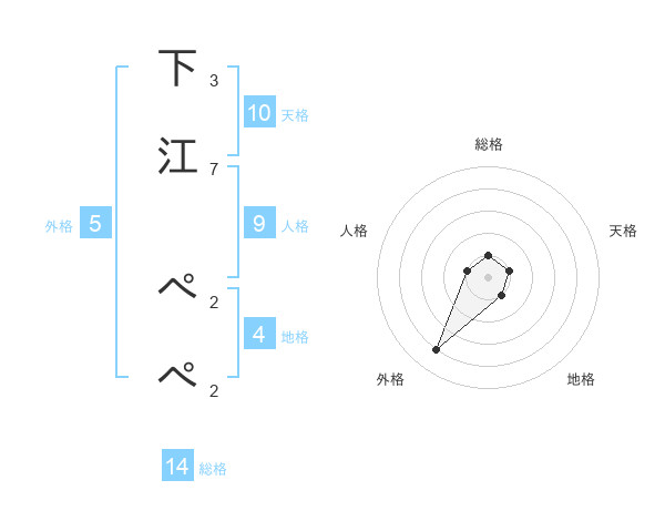 下江 ぺぺさんの総格は14画の1点!