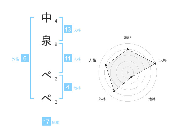 中泉 ぺぺさんを姓名の画数から五運を鑑定